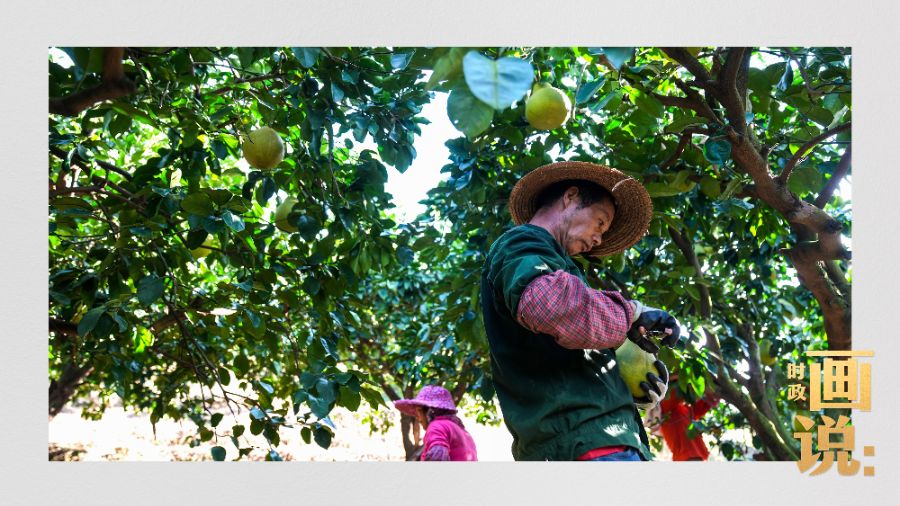 7日下午,习近平总书记在广东省梅州市梅县区雁洋镇考察南福金柚种植基地,了解当地推进乡村全面振兴等情况。