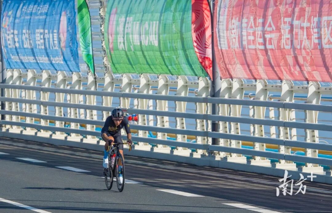 11月8日上午9时31分,在澳门北安码头轻轨站附近的一处人行天桥上,南方+记者看到,第一位参赛选手从澳门大桥骑来,他将在折返点后经由港珠澳大桥,往香港方向前进。这场以珠海为起点的跨境赛事,标志着“无感通关”从构想照进现实。