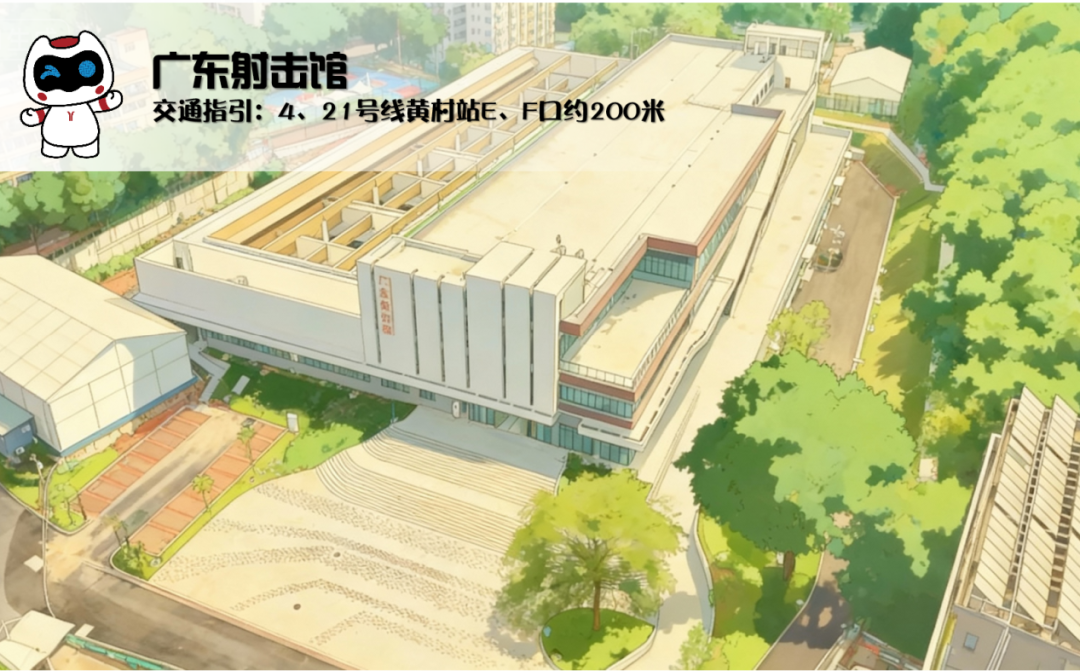 简介 :广东射击馆位于广东奥林匹克运动中心内,拥有800个座席。馆内设计有10米、25米、50米靶场和决赛馆、枪弹库及各类配套用房,满足承接国际国内大型射击比赛和国家队、省队日常集训的条件。该场馆将举行竞体项目射击(步枪、手枪)比赛。