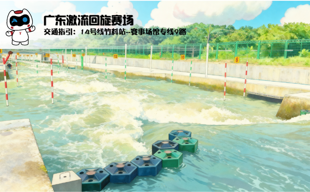 简介 :广东激流回旋赛场位于广州市白云区钟落潭镇,是2001年九运会比赛场地之一,是亚洲第一个符合国际比赛标准的人工激流赛场,曾承办多项国内外重要大型赛事,在十五运会期间将承办竞体项目皮划艇(激流回旋)比赛。