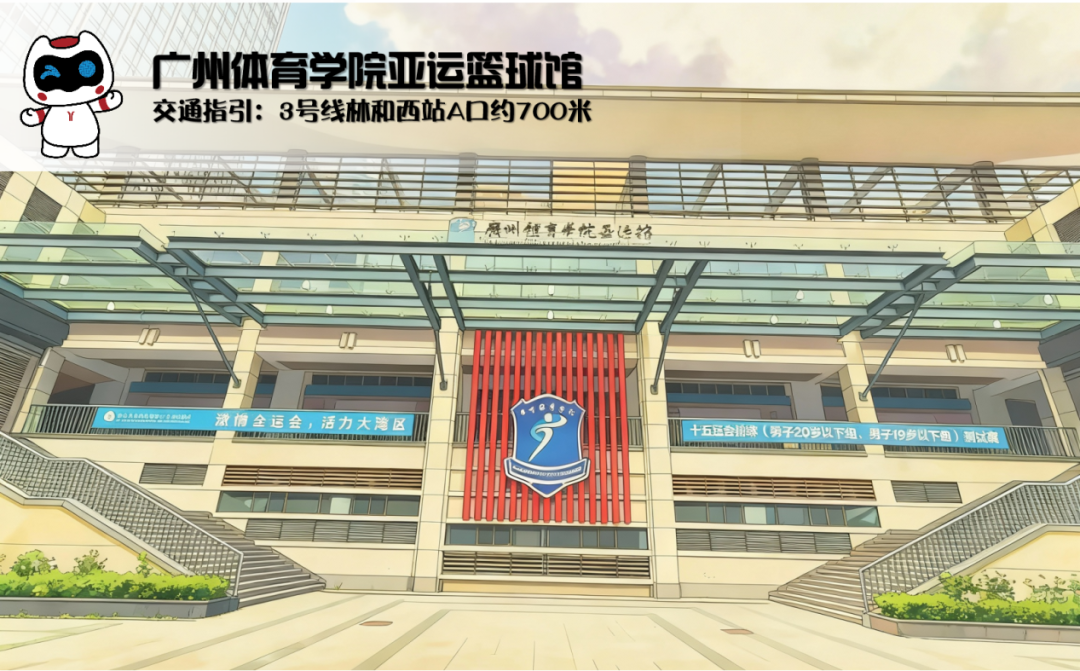 简介 :广州体育学院亚运篮球馆拥有3223个座席,曾承办2010年亚运会篮球比赛、2017年金砖国家运动会的排球比赛等大型国际性单项比赛。该场馆将承办竞体项目霹雳舞、排球(男子U20)比赛。