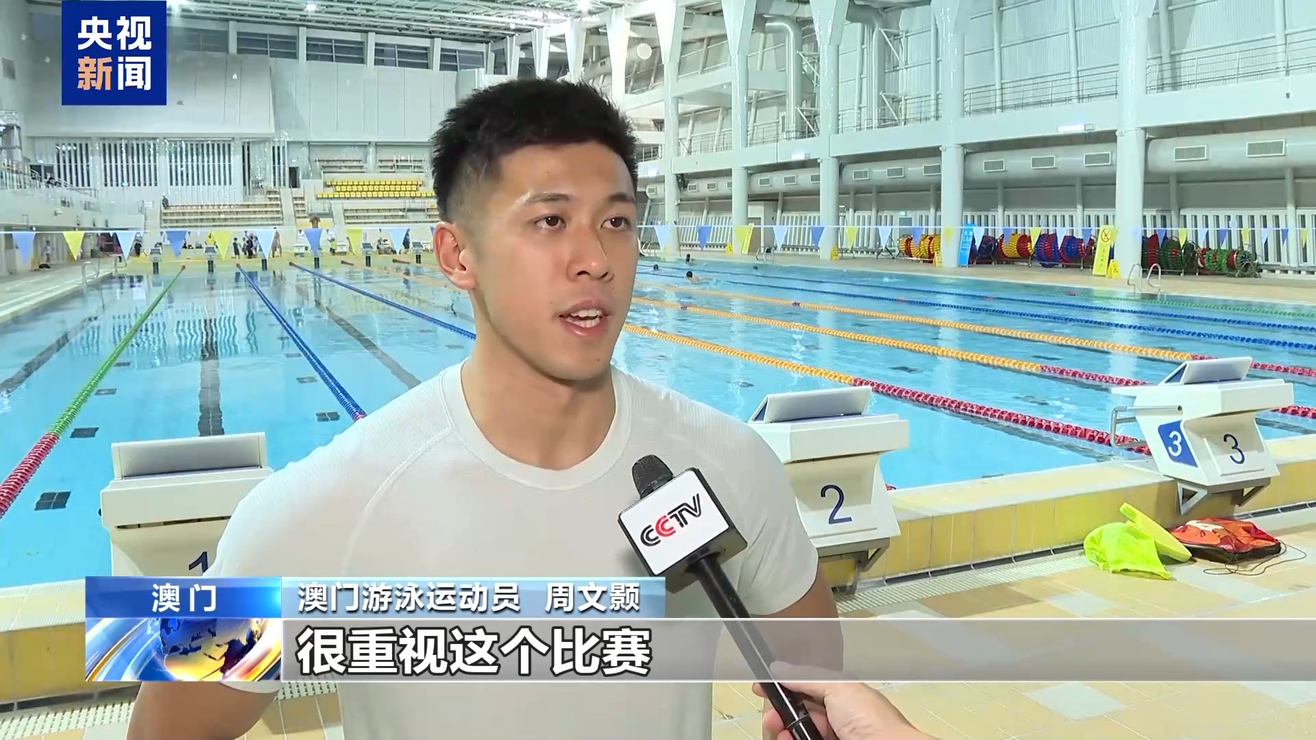 澳门游泳运动员 周文颢:我把全运会当作是今年最重要的比赛,很重视这个比赛,然后比赛水平也很高。