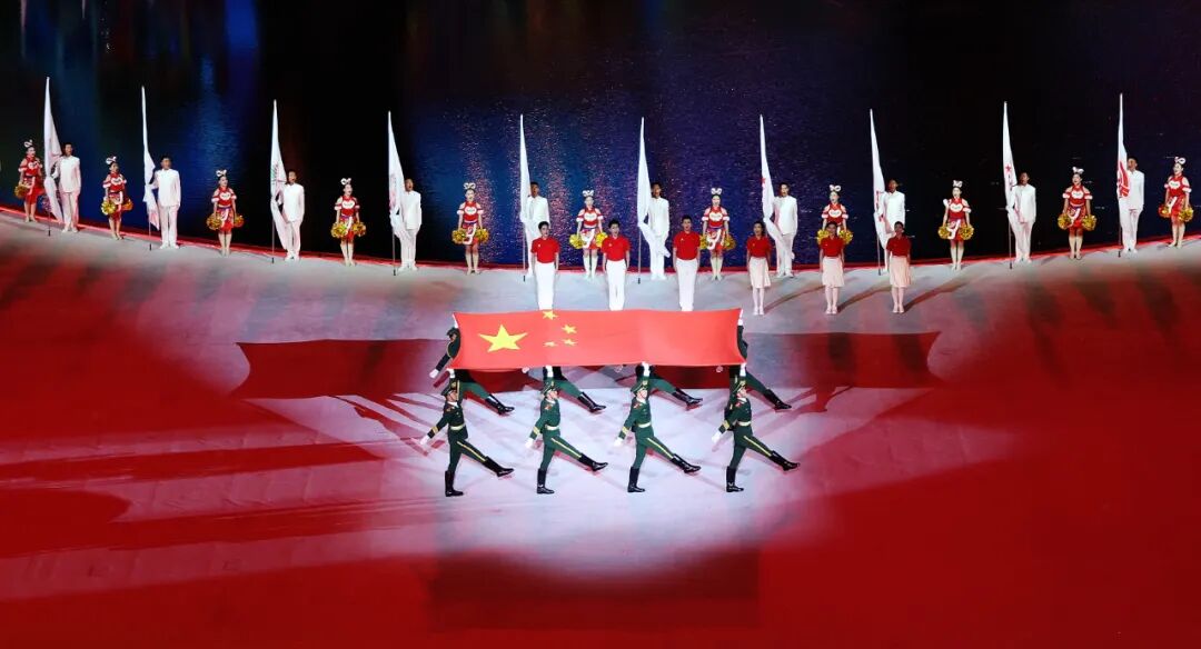 11月9日,旗手护送中华人民共和国国旗入场。新华社记者 卢汉欣 摄