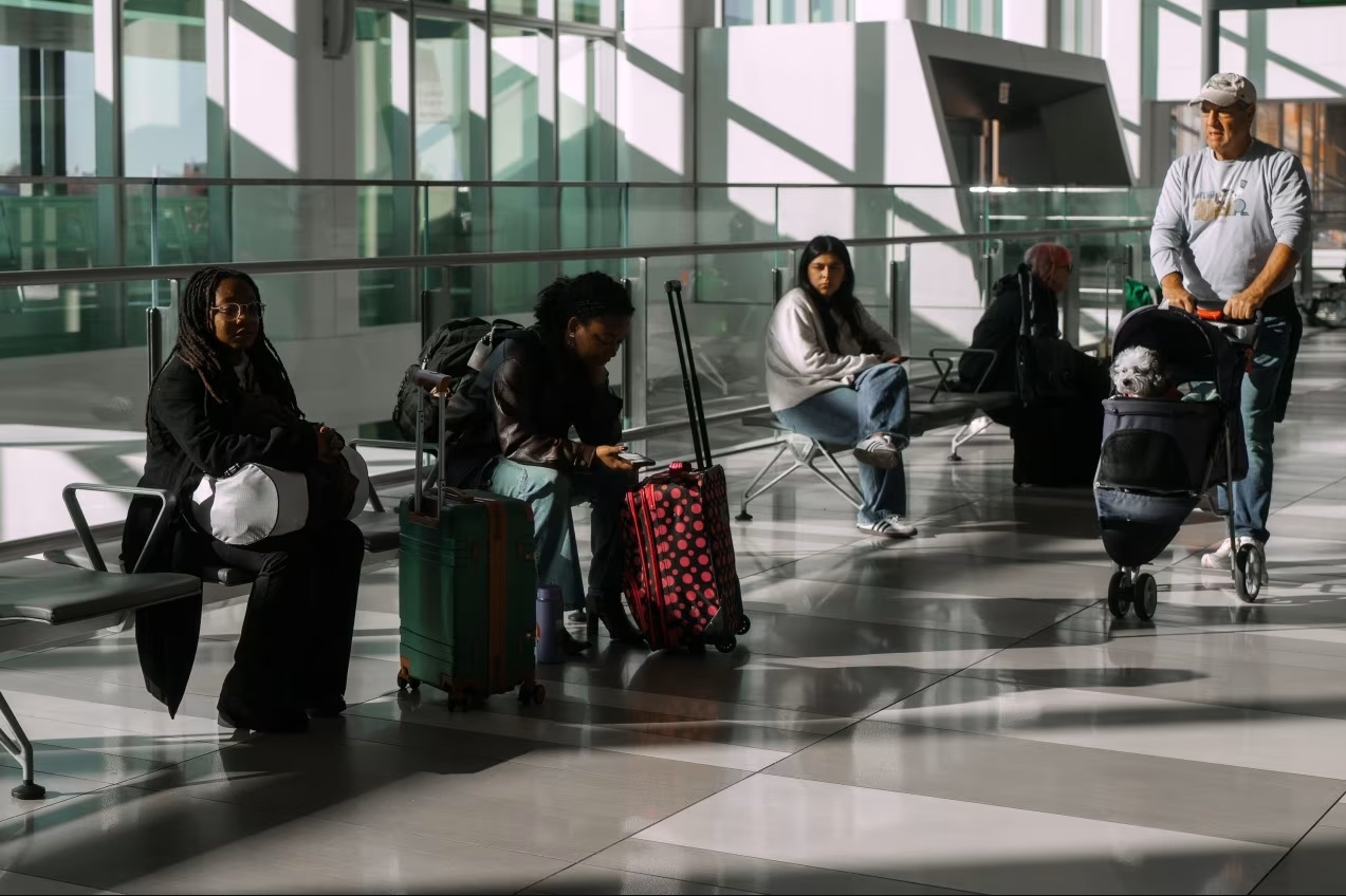 △在纽约拉瓜迪亚机场等待的旅客
