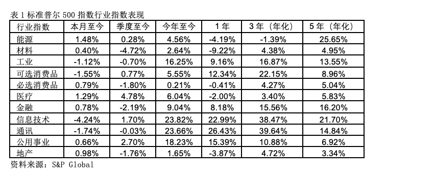 迄今为止,今年标准普尔500指数上涨了14.40%,但板块表现分化很大。强于大市的行业有信息技术、通讯、公用事业和工业股;金融股涨9.04%,未达到平均值,但表现尚可;其他行业表现则不尽如人意。第四季度至今,信息技术、通讯、可选消费品、地产、材料、金融等表现较差,虽有降息预期支持,但金融市场已显疲态。