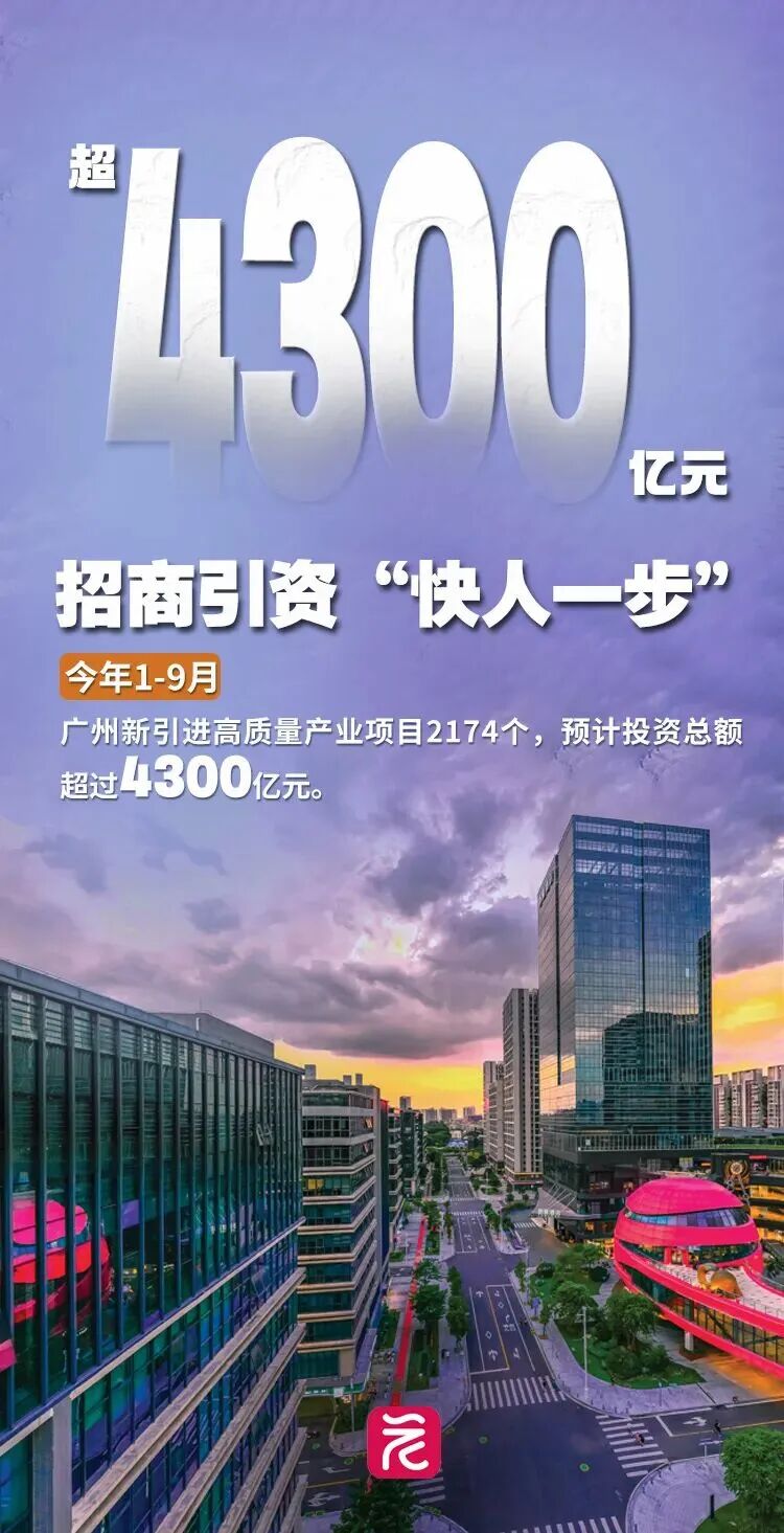 最新数据显示,今年1—9月,广州市新引进高质量产业项目2174个,预计投资总额超过4300亿元。其中,投资或产值/营收超十亿元的项目146个,全市制造业项目投资总额占比64.9%。