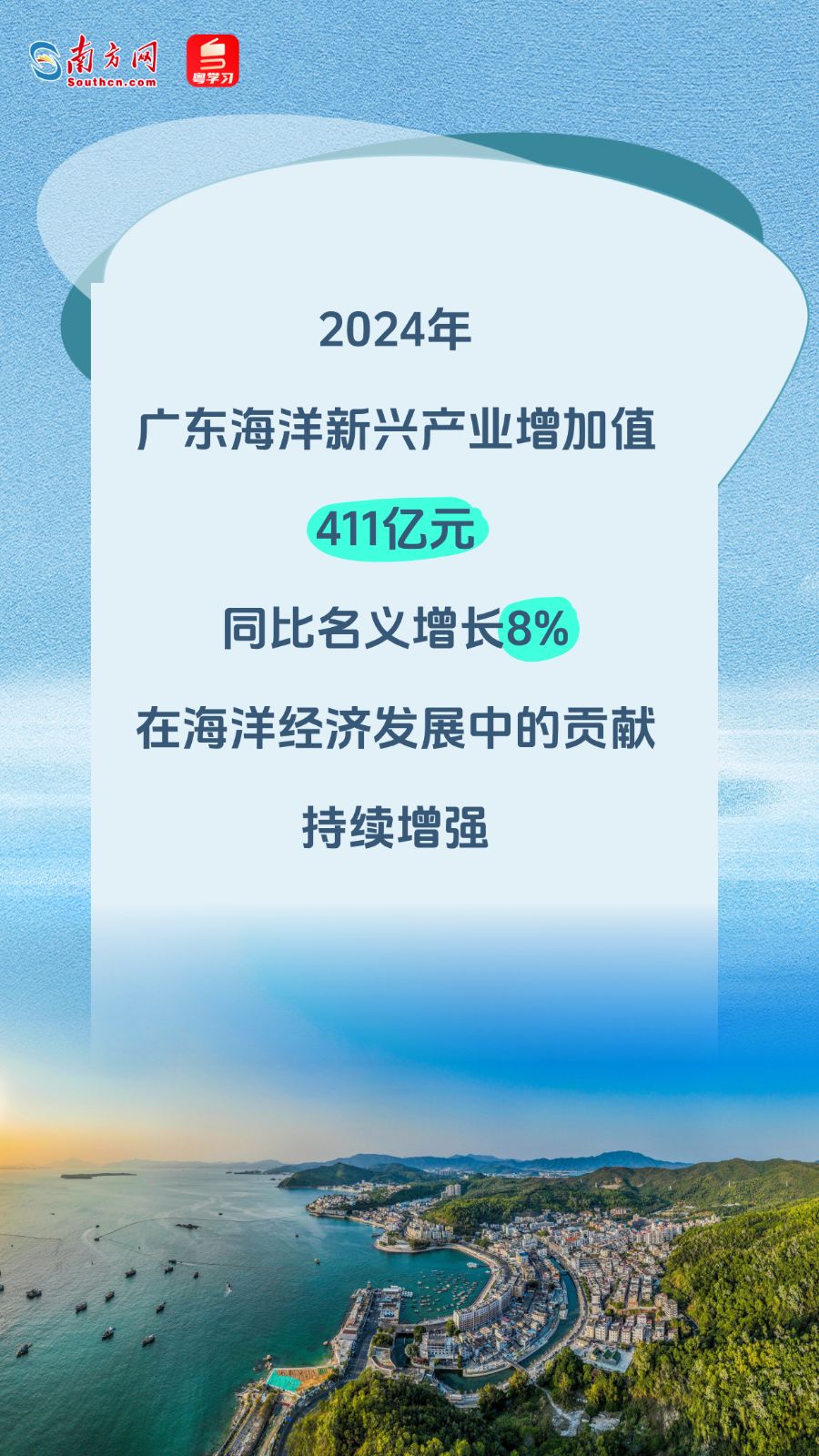 海洋是高质量发展的战略要地。党的二十届四中全会提出,加强海洋开发利用保护。目前,广东正以更大力度、更快行动发展海洋经济,以新的更大成效助力全面建设海洋强省、加快打造海上新广东。