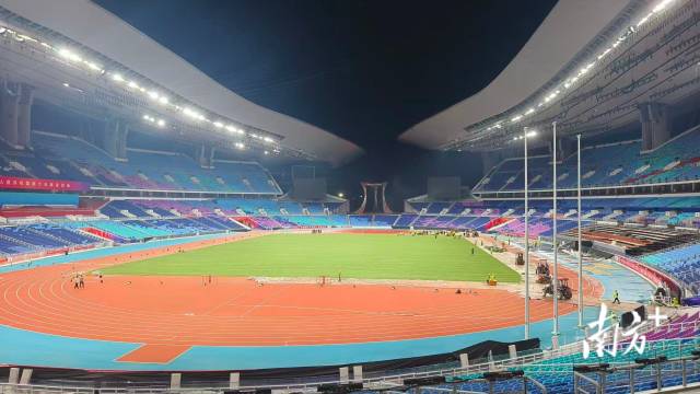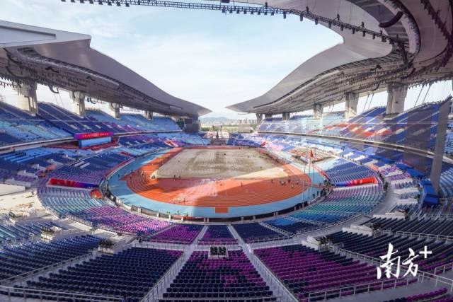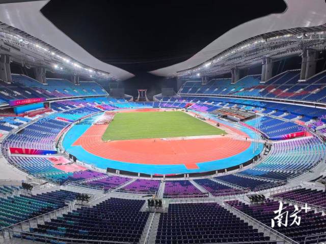 十五运会开幕式结束后,广东奥体中心便迅速开启转场,这座承载数万观众观看盛大表演的场馆,拆除舞台搭建转换为赛场设置,迅速变身专业田径赛场,迎接11月15日即将在这里举行的田径赛事。2500人次通宵作业,多团队高效协同,各环节精细化管理确保安全……广东奥体中心最终只用了30个小时就完成转换工作,比原计划提前35个小时,创下全运会转场新纪录。