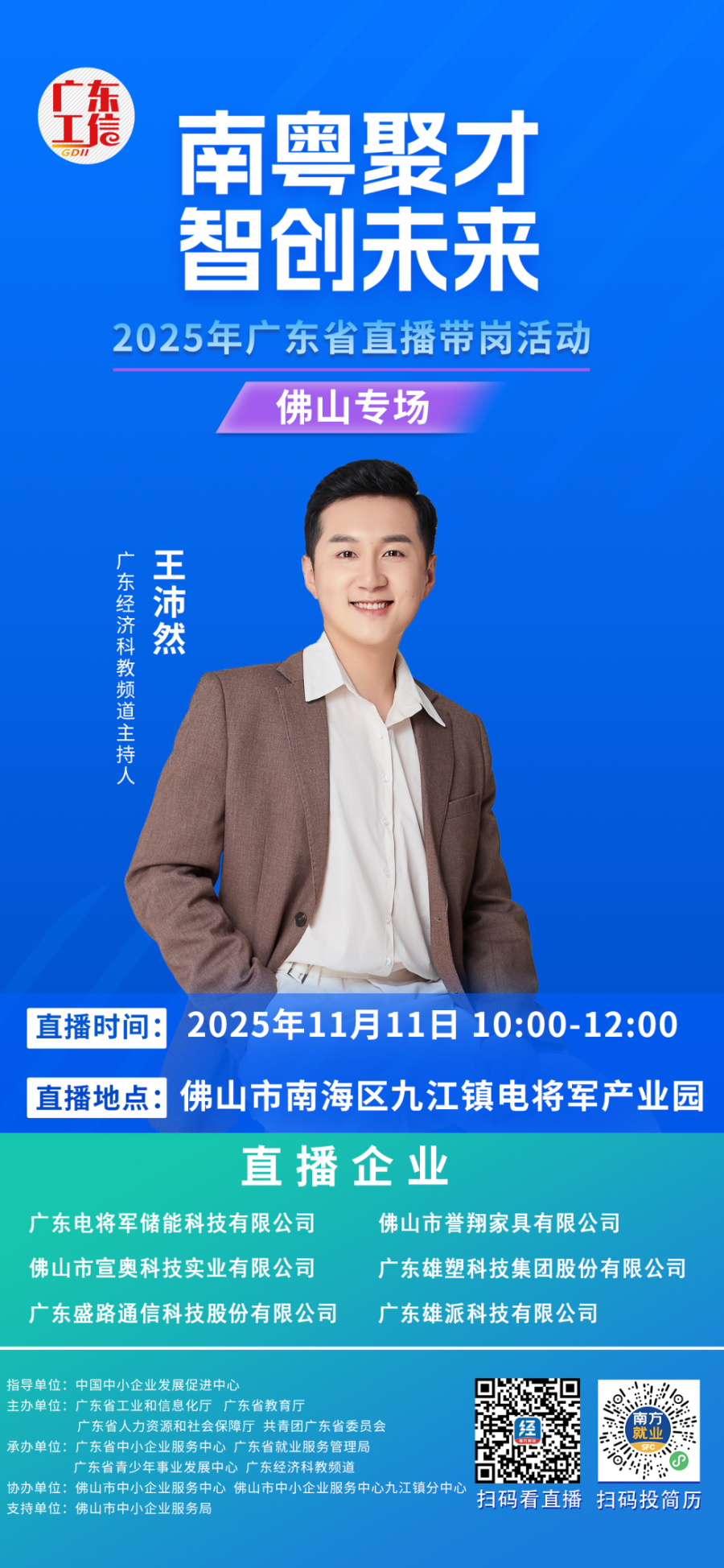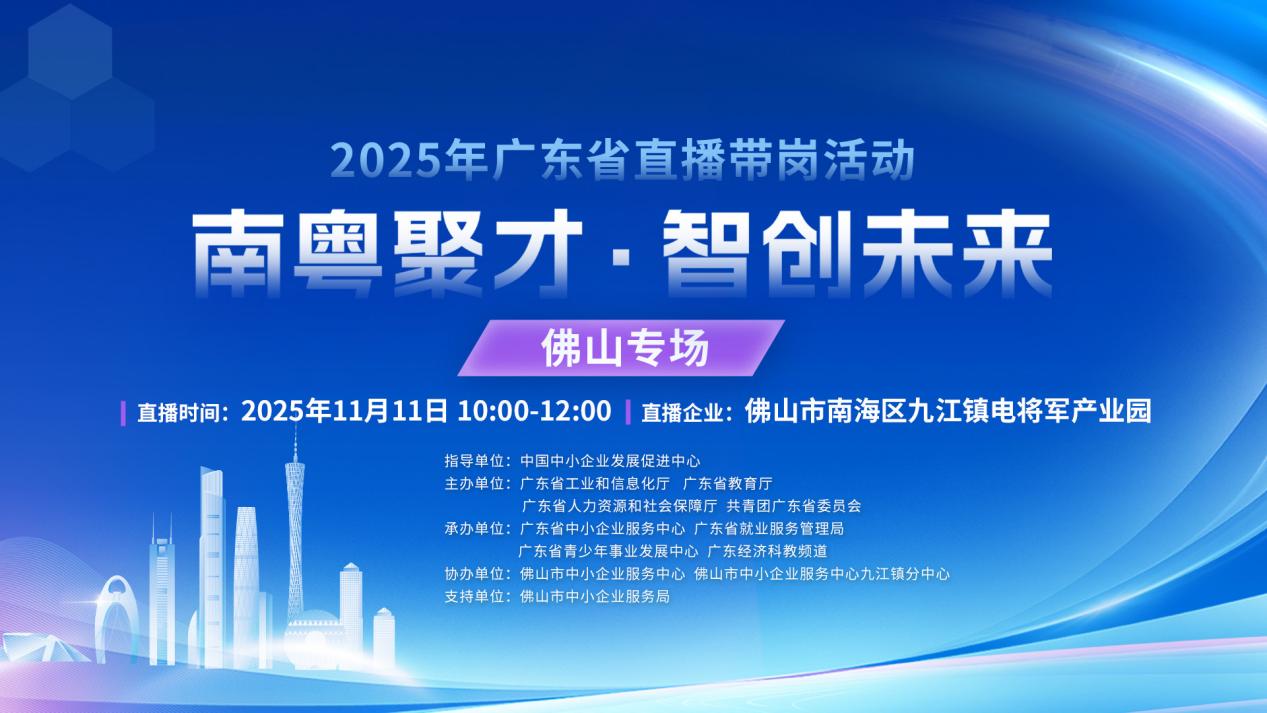 2025年广东省直播带岗活动将在2025年7月-12月开展40场线上招聘会。本次活动由中国中小企业发展促进中心指导,广东省工业和信息化厅、广东省教育厅、广东省人力资源和社会保障厅、共青团广东省委员会联合主办,广东省中小企业服务中心、广东省就业服务管理局、广东省青少年事业发展中心、广东经济科教频道共同承办。