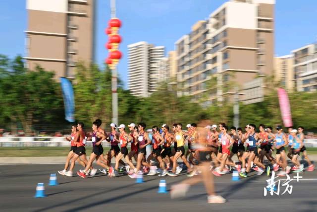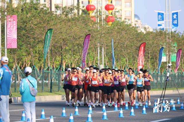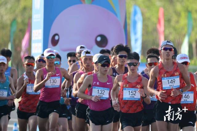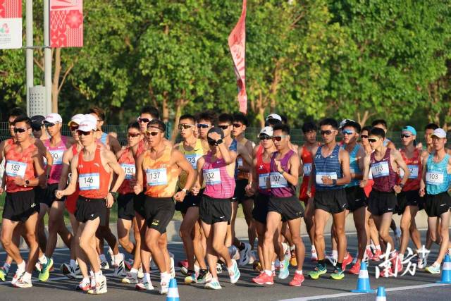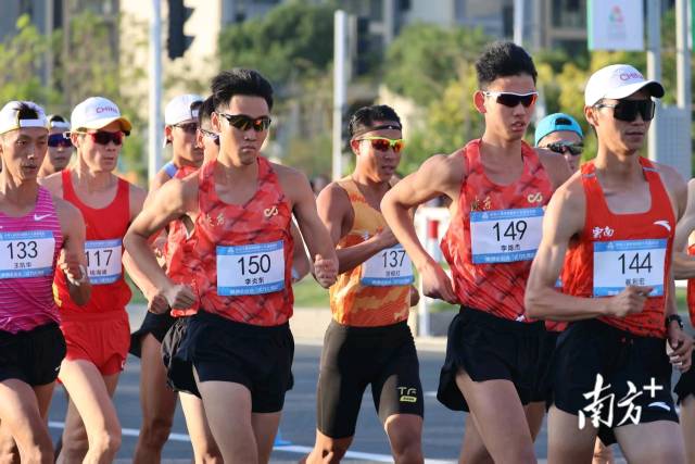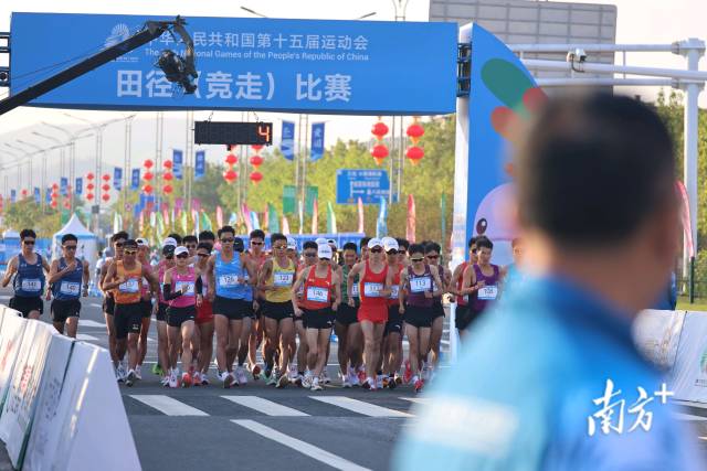 11月12日上午7时30分,第十五届全国运动会田径(竞走)比赛男子20公里项目在珠海金湾正式开赛。随着一声令响,运动健儿们健步如飞,迎着朝阳在金湾路海岸线上一路疾驰。这也是本届全运会首个开赛的田径赛事。当天上午,还将进行另一个人项目女子20公里竞走赛事。