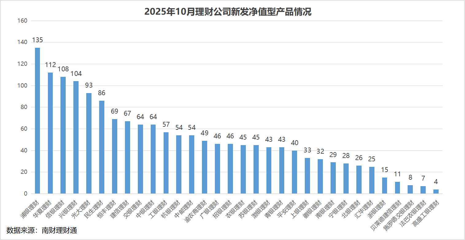 从投资性质上看,理财公司2025年10月新发产品仍以固收类产品为主,产品数量占比达到98.7%。不过,理财公司也在坚守稳健根基的基础上,抓住股票市场上行周期机会,布局混合类产品和权益类产品。
