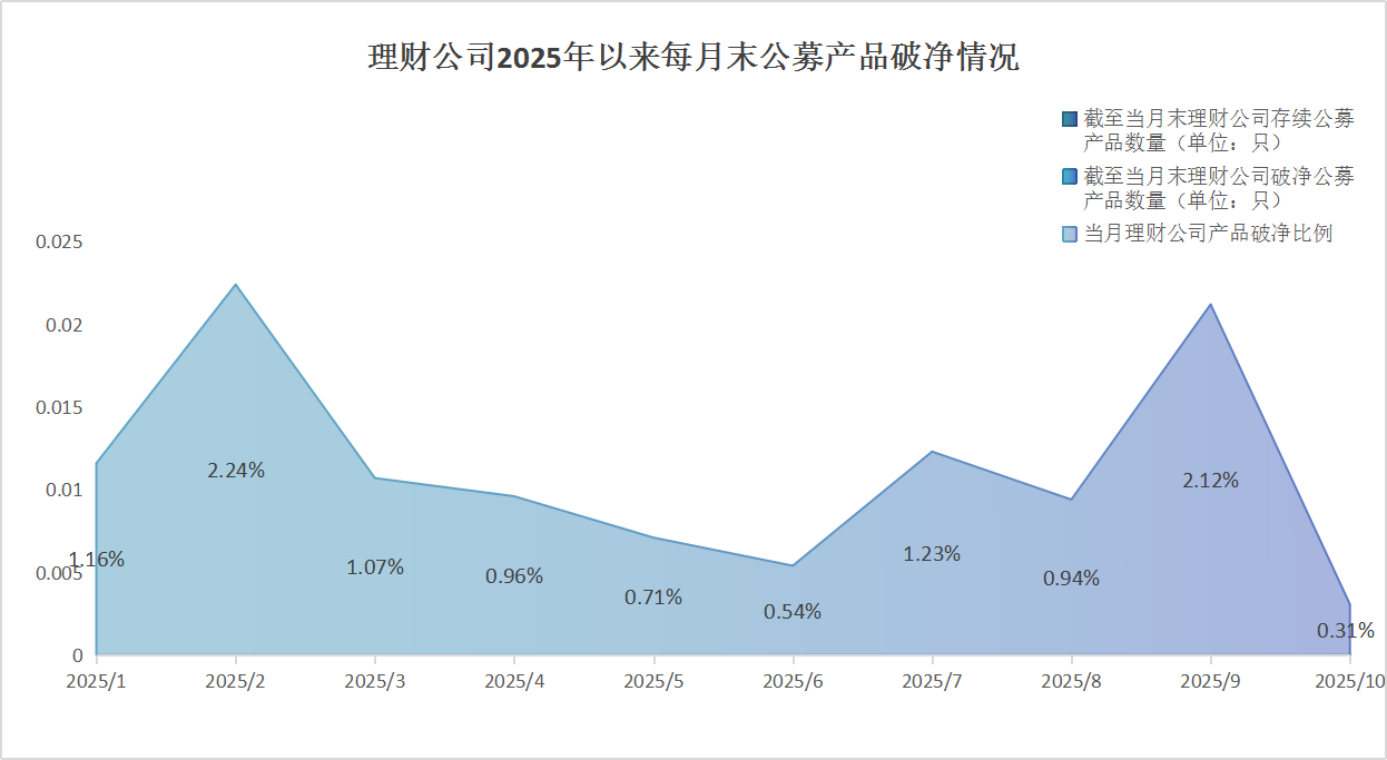 新发情况:2025年10月,在央行重启国债买卖、股债跷跷板效应减弱等因素作用下,债市情绪有所回暖,从而对理财产品募集构成支撑。10月份理财公司产品合计募集资金3005.71亿元,产品募集规模均值为3.18亿元,环比上月的2.25亿元涨超40%。