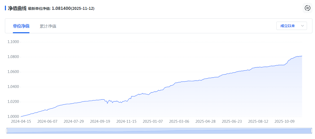 从业绩表现看,“慧盈象固收增强六个月持有期9号理财产品B类”自成立以来持续稳健增长,产品年化收益率长期跑赢业绩比较基准。根据南财理财通数据统计,该产品2025一季度、二季度年化收益率分别达到6.53%和4.56%,均跑赢当期业绩比较基准中枢3.72%。2025年10月,产品更是实现了业绩爆发,年化收益率突破10%关口,达到12.22%。