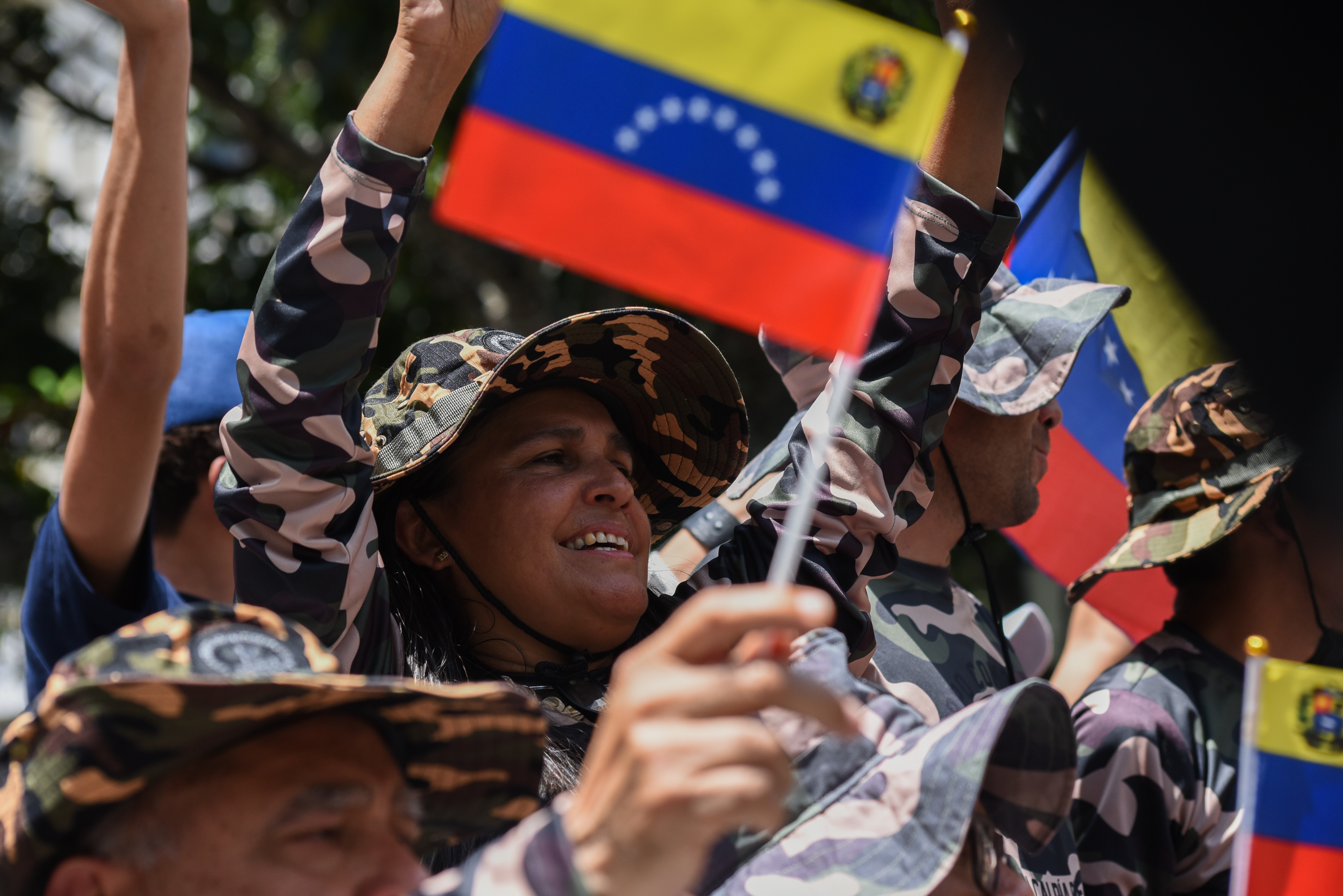2025年10月4日,在委内瑞拉首都加拉加斯的玻利瓦尔广场,玻利瓦尔民兵组织成员参与全国特别军事演习。新华社发(马科斯·萨尔加多摄)