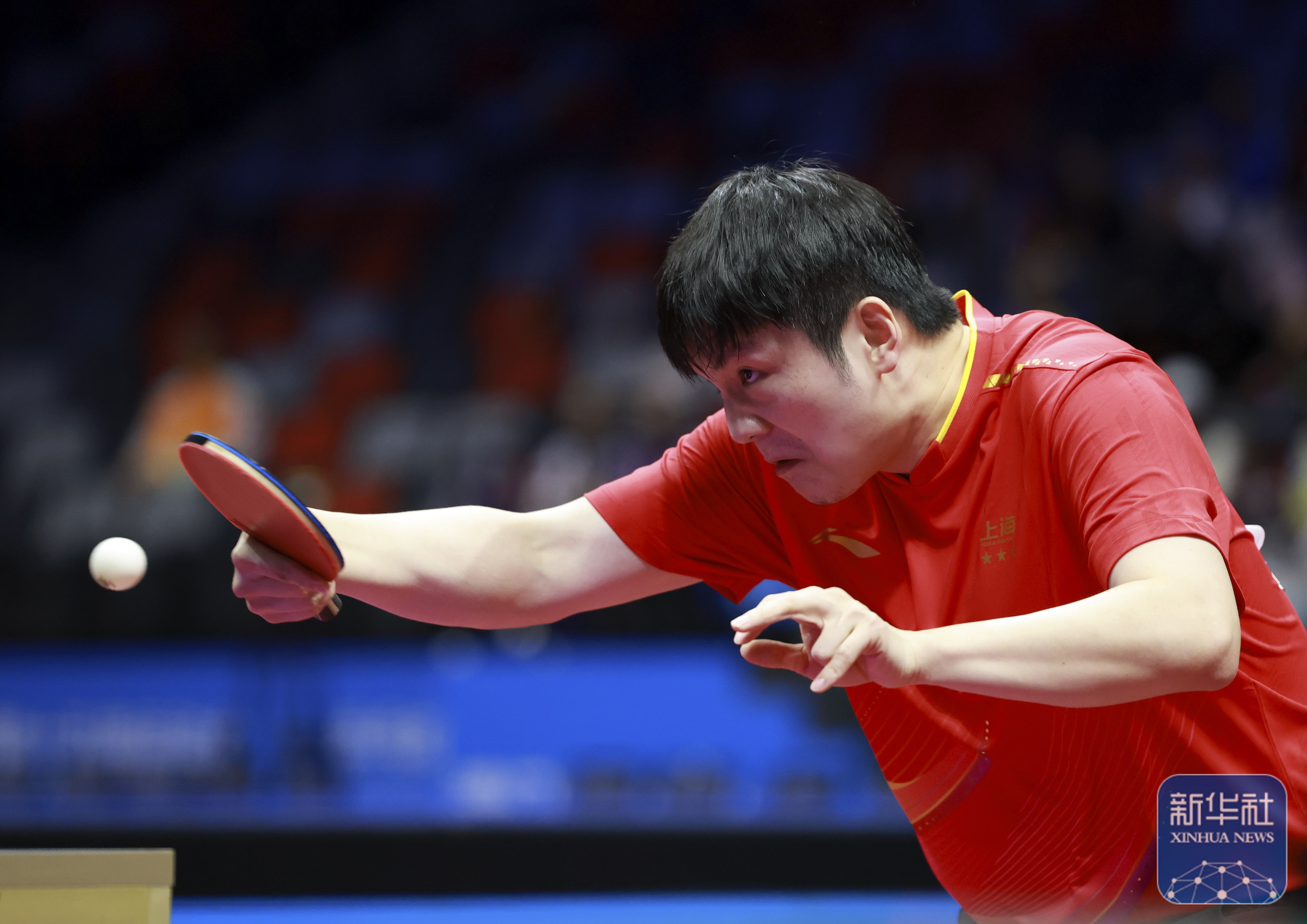 当日,第十五届全国运动会乒乓球男子单打金牌赛在澳门举行,上海队选手樊振东4比1战胜海南队选手林诗栋,夺得金牌。