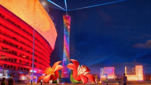 本届灯光节主会场共展出36组作品,通过光影演艺、AIGC技术、互动投影等科技手段,融入十五运视觉元素、轻演艺表演等形式,强化“激情全运会,活力大湾区”的全运主题,为十五运会的宣传推广提升城市氛围。