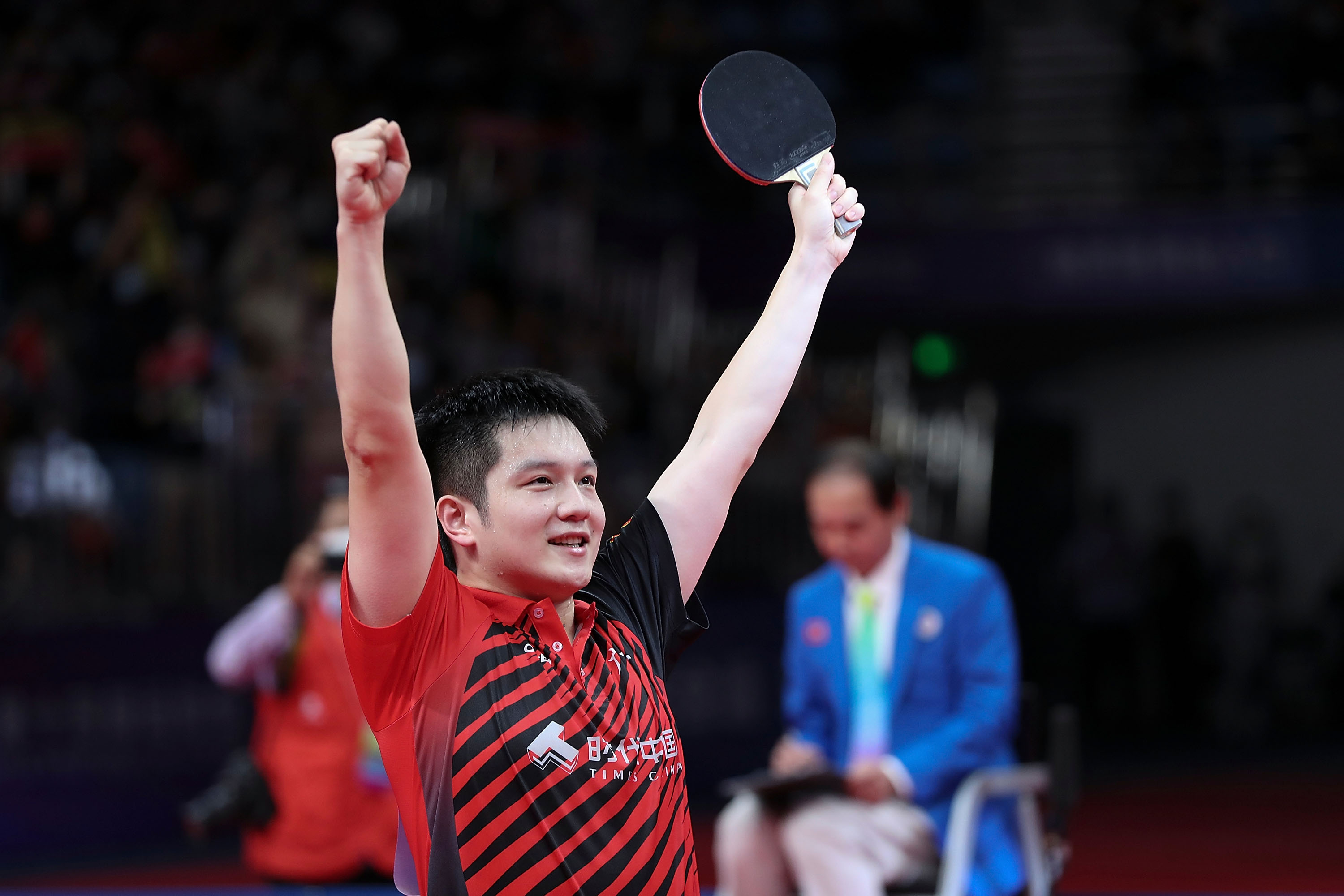 11月16日,上海队选手樊振东庆祝获胜。新华社记者 刘续 摄