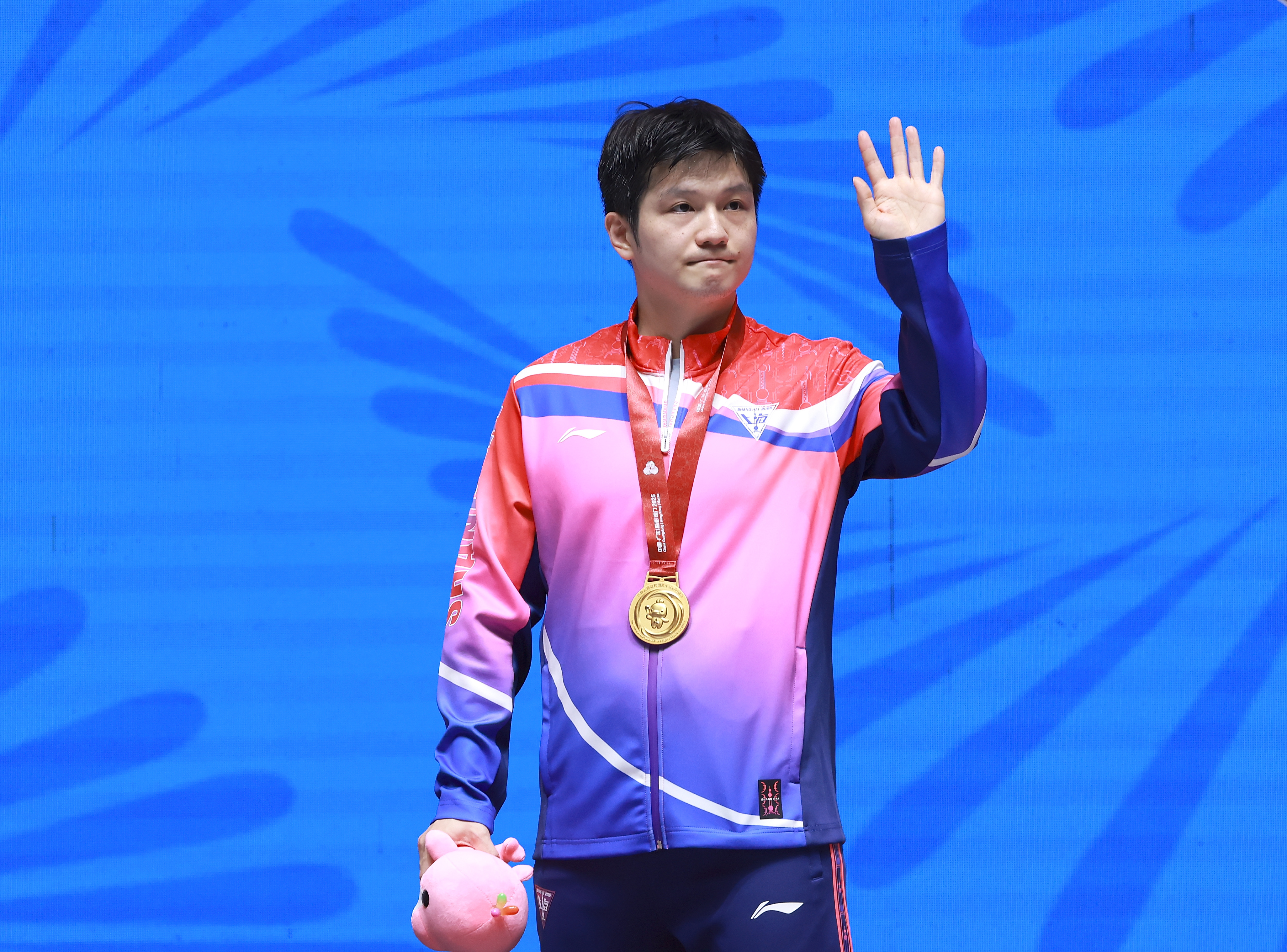 11月16日,冠军上海队选手樊振东在颁奖仪式上。新华社记者 梁旭 摄