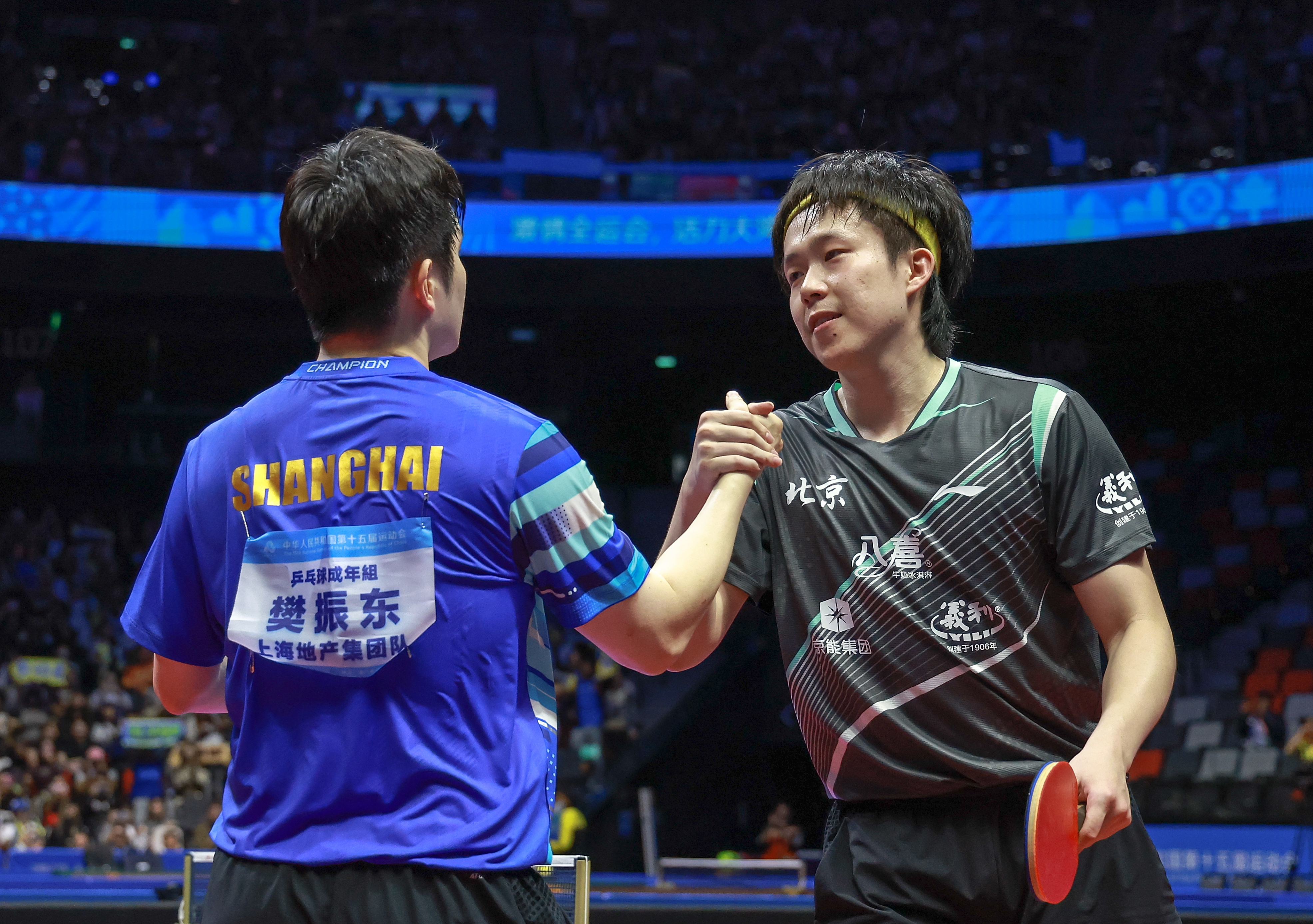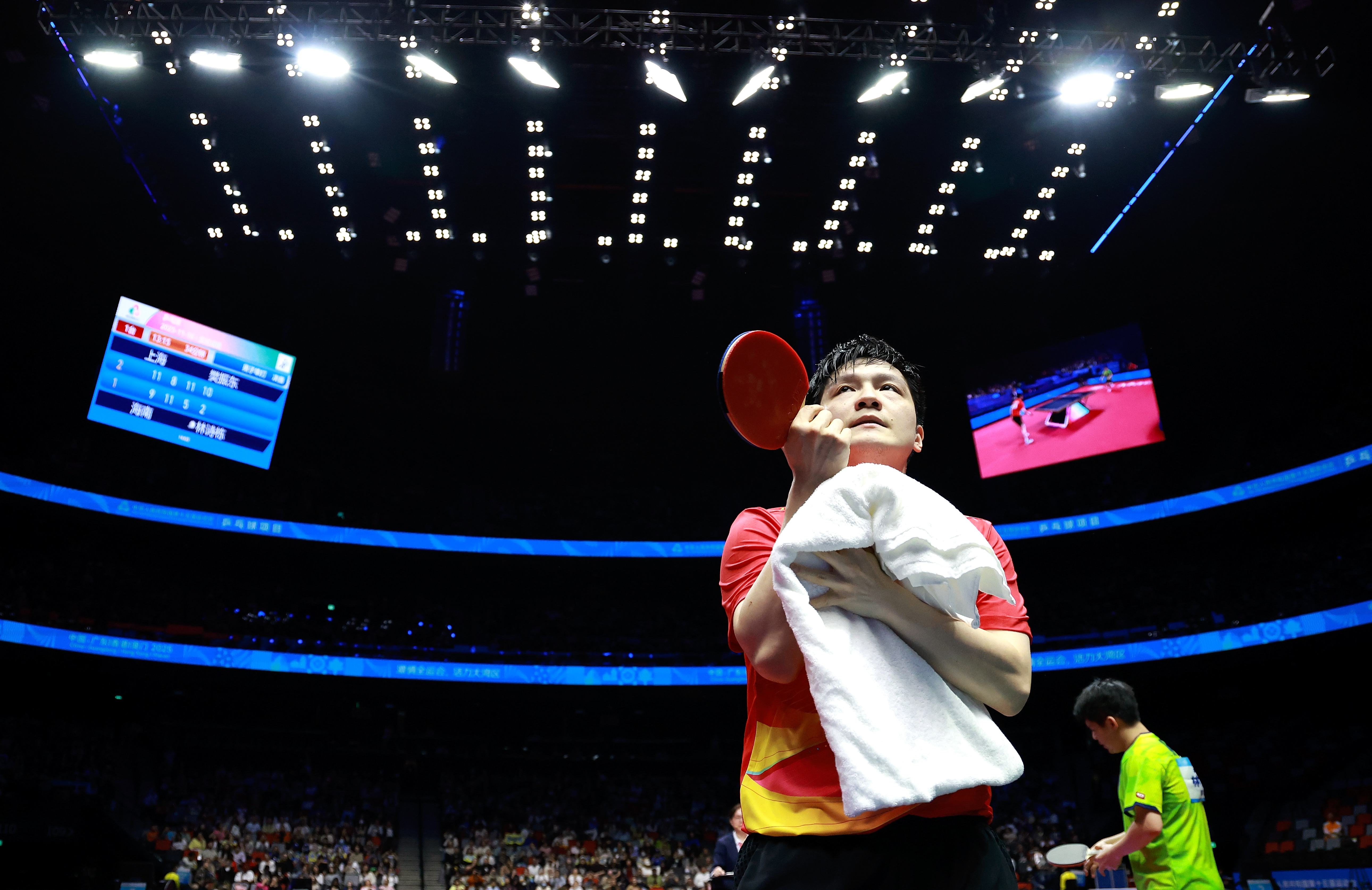 11月16日,澳门银河综艺馆的聚光灯下,第十五届全运会乒乓球男单决赛场,上海队的樊振东与海南队的林诗栋相遇。