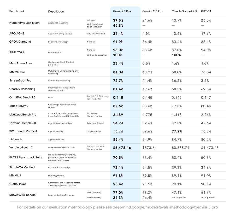 “Gemini 3是我们目前最智能的模型,目标是让用户把任何想法变成现实。”谷歌CEO Sundar Pichai在官方博客中写道。