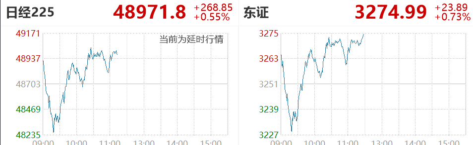 11月19日,日韩股市走出V型走势并飘红,截至10:28,日经225指数涨0.55%,东证指数涨0.73%。