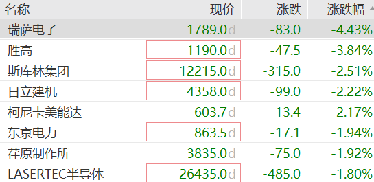 个股方面,受隔夜美股科技股大跌影响,瑞萨电子跌超4%,爱德万测试、东京电子、任天堂等跟跌,资生堂、味之素等消费股继续走低。软银集团则涨超2%。