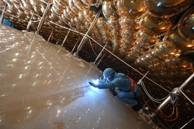 江门中微子实验的核心探测器位于地下700米,是一个有效质量达2万吨的液体闪烁体探测器,坐落于一个44米深的水池中央。