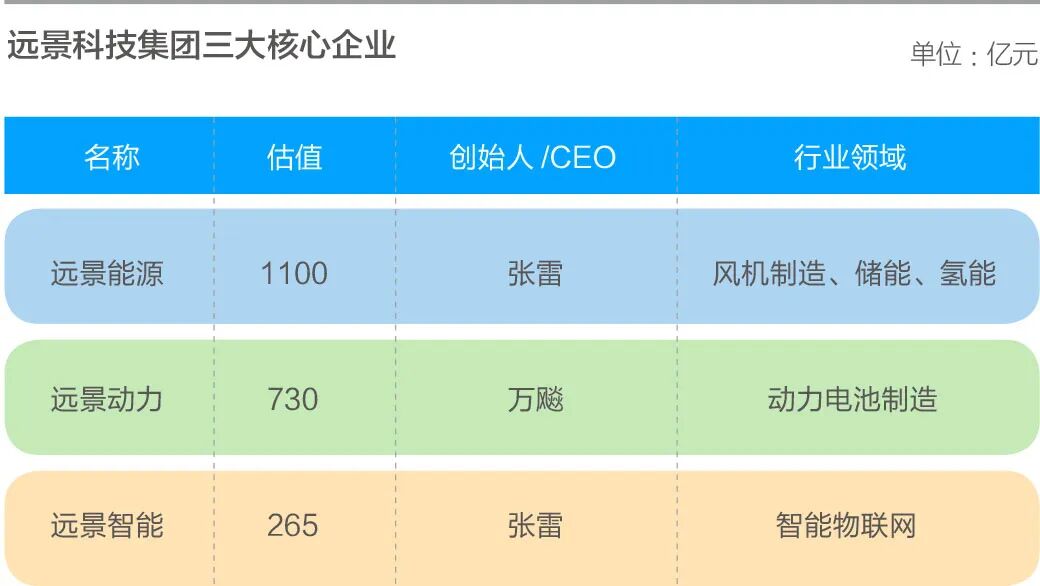 他做风机起家,经营18年,将业务扩展至三大核心板块:主营风电、储能、氢能的远景能源,制造动力和储能电池的远景动力以及做智能物联网业务的远景智能。