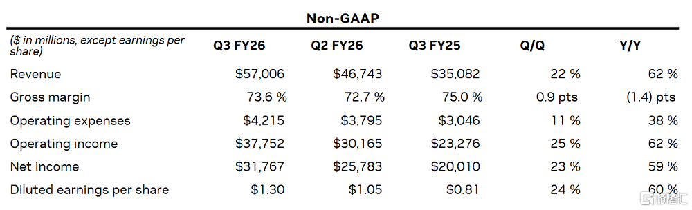 财报显示,英伟达第三财季营收达到了570.1亿美元,同比增长62%;净利润319.1亿美元,同比大增65%;