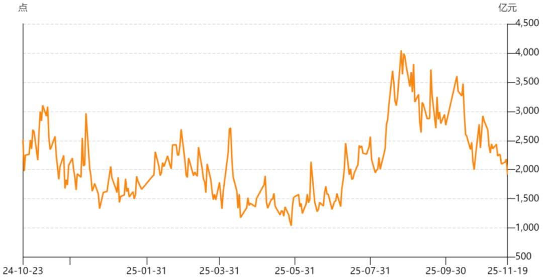这是陆股通每日成交额,8月底还有4000多亿元,如今只剩2000亿元。即便看不见北向资金,也看得出他们在减仓。