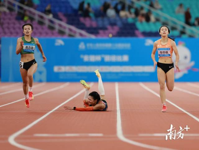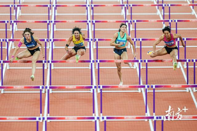 几个小时里,让她印象深刻的画面很多——广东队刘景扬和四川队吴艳妮都冲进13秒内;四川队刘英兰起跑后发生意外摔倒在地,依然爬起来奋力奔跑;大屏上不断出现的“PB”(个人历史最好成绩)和“SB”(赛季最好成绩)……