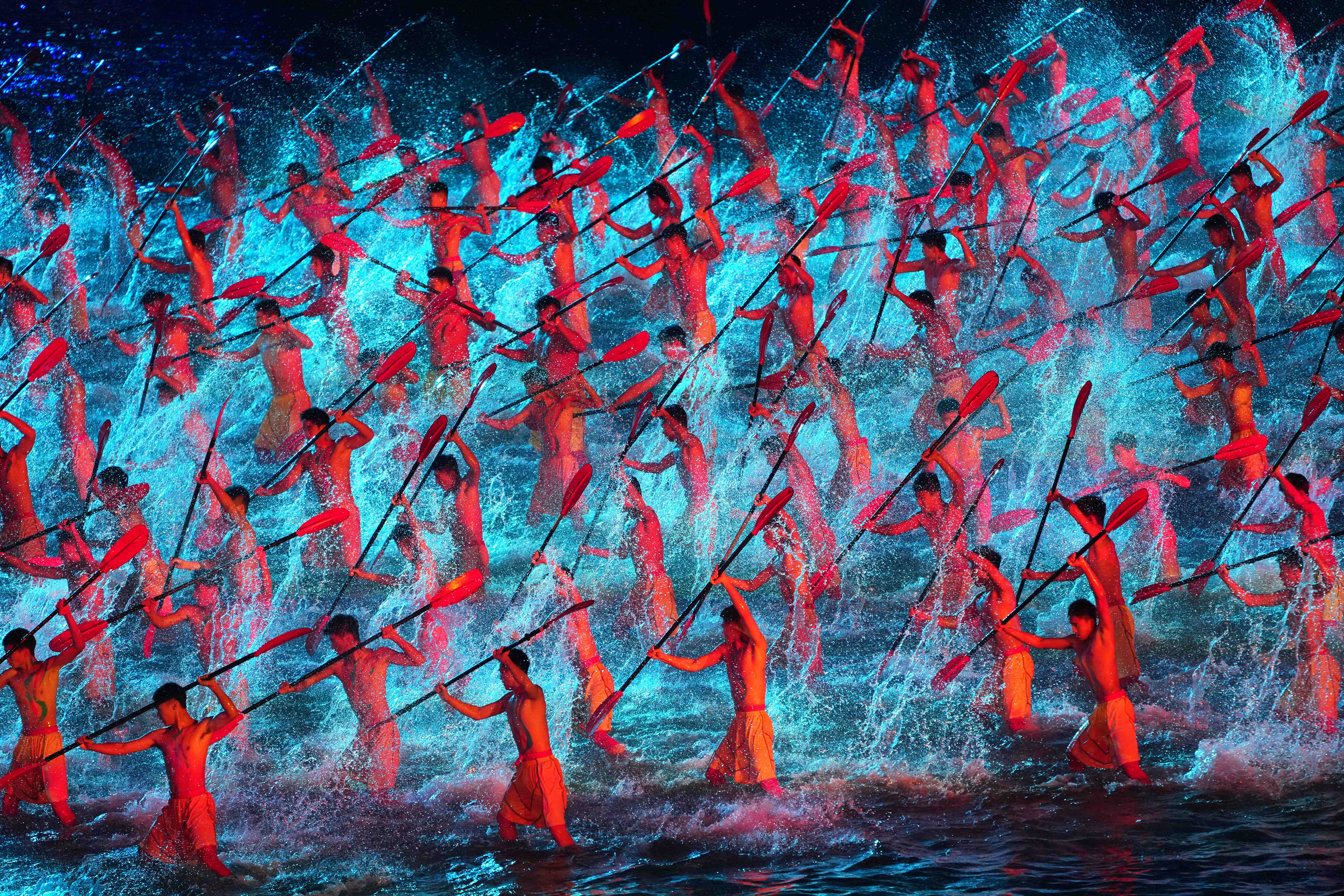 龙舟竞渡水花四起