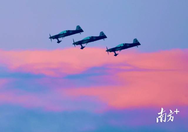 2025亚洲通用航空展将于下周在珠海启幕。11月23日清晨,3架XA42特技飞机划过刚刚破晓的珠海蓝天,进行了单机翻滚、回旋,以及3机编队飞行等预演。随后,4架民用初教-6飞机也从珠海机场依次滑行升空,在晨曦中迎来其到访珠海后的首次适应性训练。
