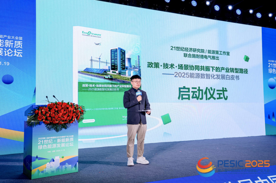 本次论坛还正式启动了《政策·技术·场景协同共振下的产业转型路径——2025 能源数智化发展白皮书》(下称《白皮书》)发布仪式。《白皮书》是由21世纪经济报道能源策工作室联合施耐德电气共同推出。