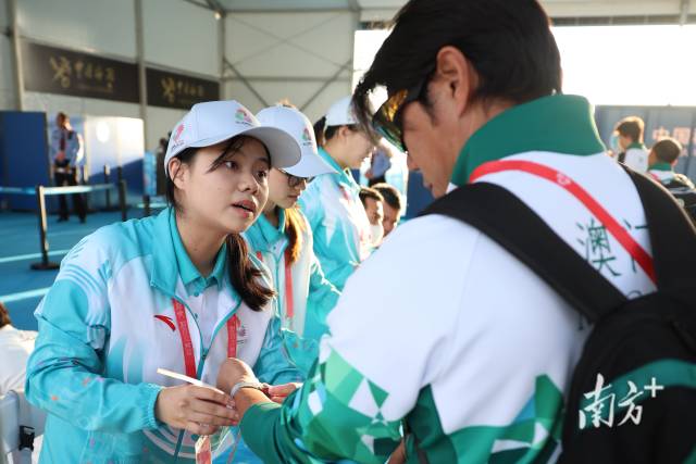 为确保志愿服务工作与赛事需求精准对接,十五运会广东赛区执委会大型活动和志愿服务部创新构建“全省一盘棋”的工作格局,经过层层选拔与系统培训,组建一支3万名的赛会志愿者队伍,平均年龄19.42岁,来自全省17个承办地市、99所高校;香港组建了超1.6万人的志愿者团队,其中15岁至17岁的青年志愿者超1000名;澳门也组建了超3500人的志愿者队伍。粤港澳三地志愿者活跃在赛场内外,成为赛会运行的重要支撑。