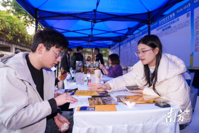 走进浙江大学招聘会现场,大科学装置、科技企业与城市文化展区共同构成了年轻、开放、创新的南粤就业图景。