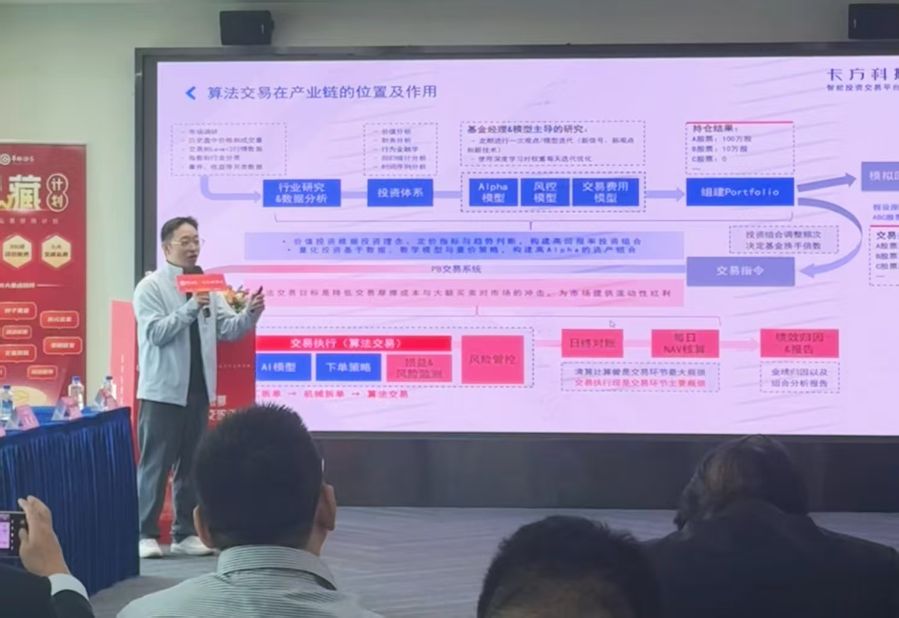 卡方科技业务执行董事朱剑威进行活动致辞,朱剑威称公司始终秉持“让数智交易能力更易懂”的初心,致力于弥合交易技术与运维场景之间的断层,促进专业服务与客户需求的高效对接。他强调,交易无小事,每一个细节的优化,都可能带来显著的价值提升。