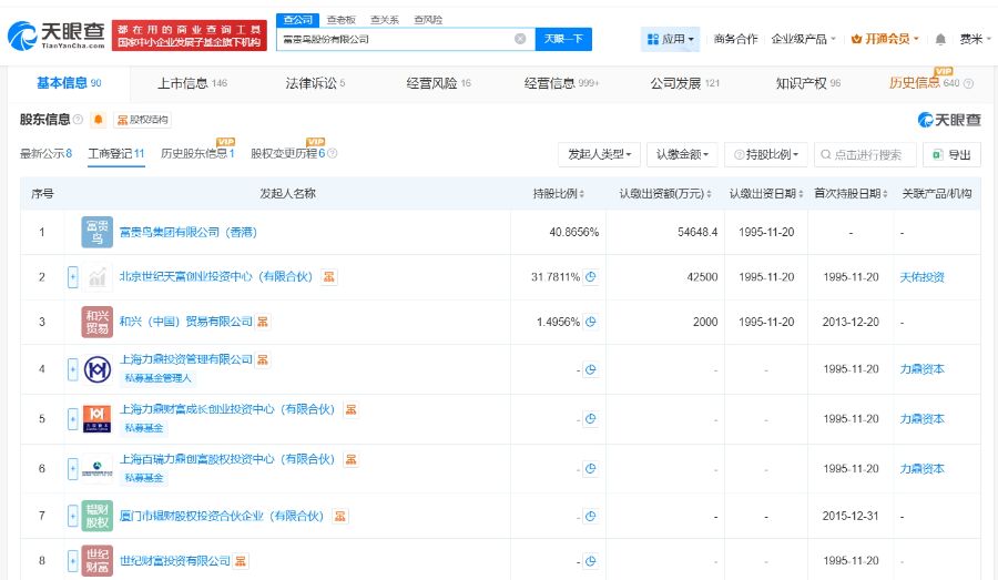 富贵鸟股份有限公司成立于1995年11月,法定代表人为林和平,注册资本约13.4亿人民币,经营范围包括生产皮鞋、皮带、皮包及其它皮制品等。股东信息显示,该公司由富贵鸟集团有限公司(香港)、北京世纪天富创业投资中心(有限合伙)、和兴(中国)贸易有限公司等共同持股。