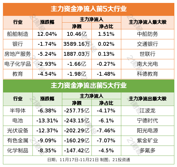 行业资金流向: