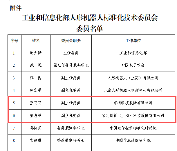 名单显示,宇树科技股份有限公司王兴兴、智元创新(上海)科技股份有限公司彭志辉等为副主任委员。