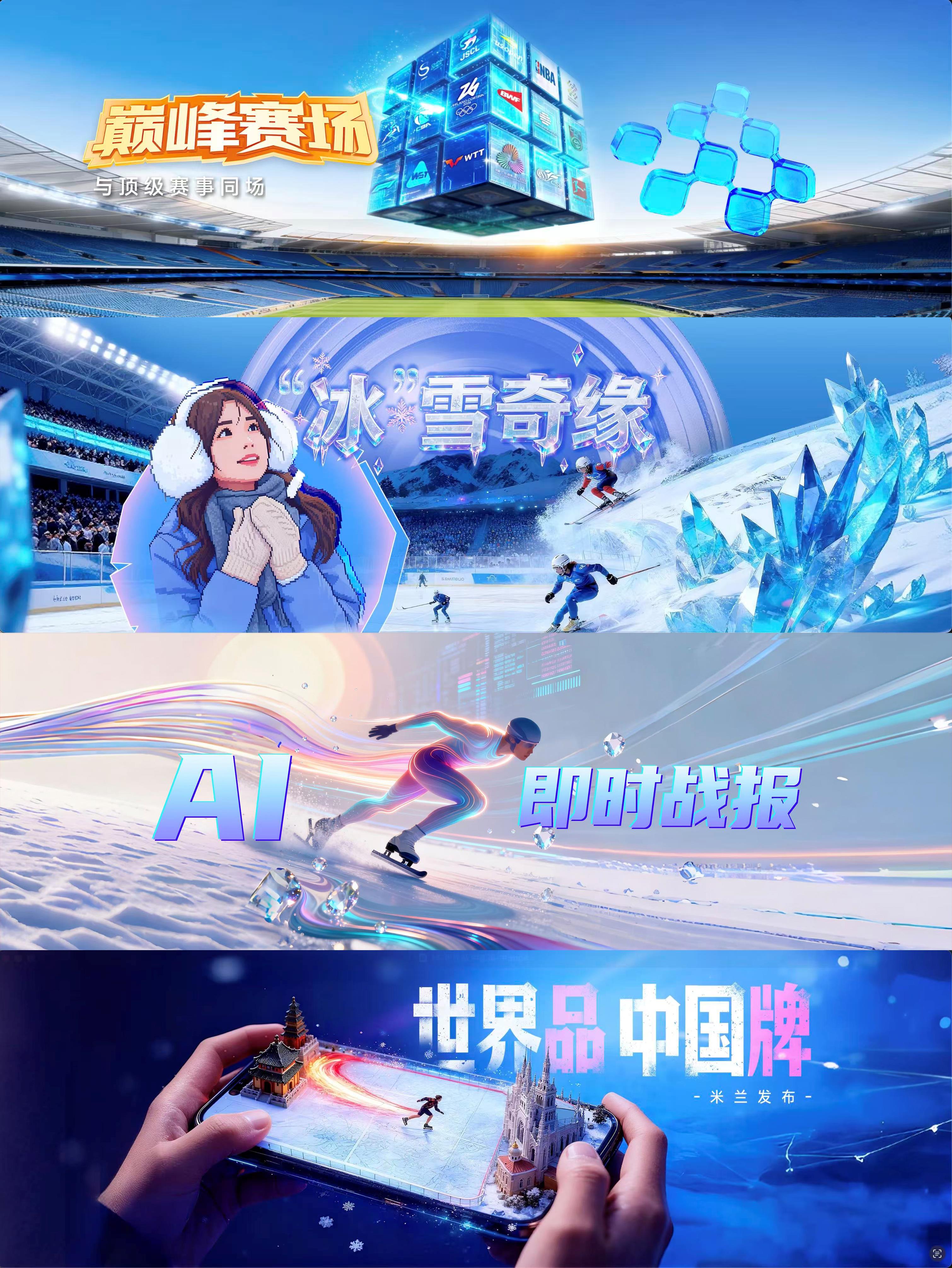 央视频将推出《巅峰赛场》《“冰”雪奇缘》《AI即时战报》《世界品 中国牌》等重点IP,凸显技术赋能的传播优势,强化节目专业性与商业价值。