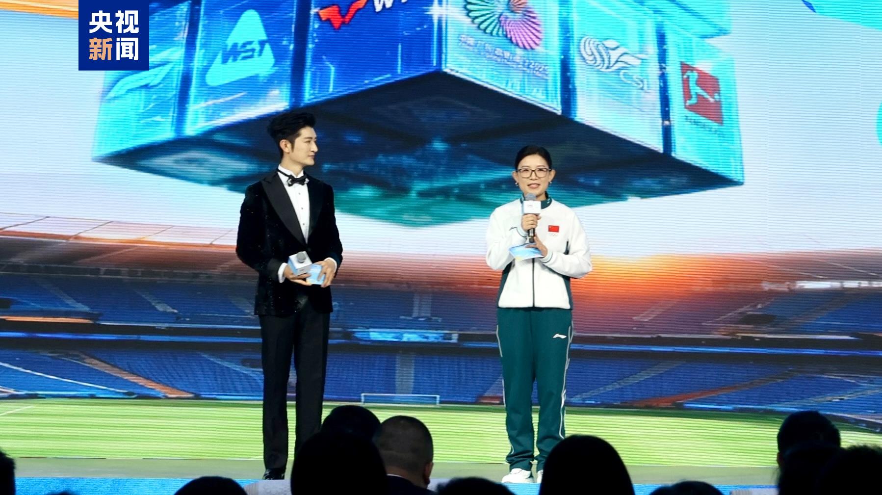 △国际奥委会委员、中国速度滑冰奥运会冠军张虹,中国自由式滑雪运动员郭丹丹作现场推介