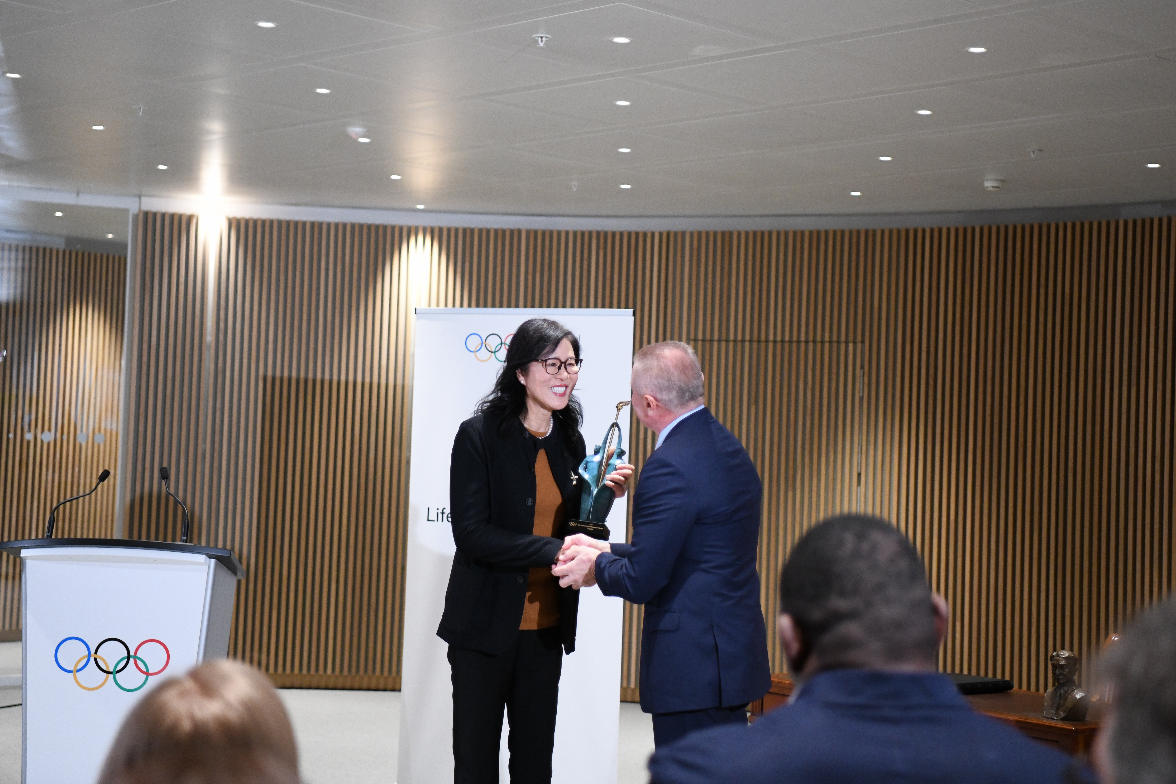 国际奥委会主席考文垂在现场致辞时表示,两位教练成就非凡。“他们不仅将运动员培养成了世界上最优秀的选手,同时培养了他们优秀的品格。”她说,“能够参加这个典礼对我来说意义非凡。”