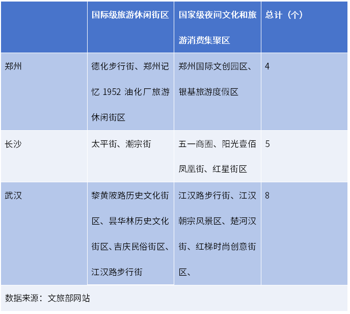 文旅部公布的《国际级旅游休闲街区》和《国家级夜间文化和旅游消费集聚区》两份名单,可反映一座城市在优质消费载体上的培育能力。这两份名单的入围街区数量上,郑州不及长沙和武汉。