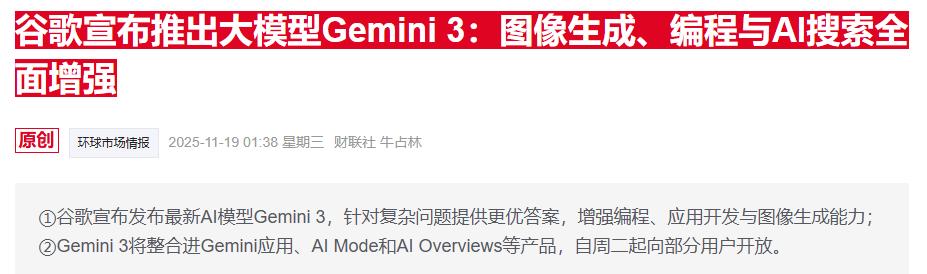 Jones Trading首席市场策略师Mike O\'Rourke表示,Gemini 3的发布对英伟达来说可能会成为一个较隐秘的、却更具有颠覆性的“DeepSeek式冲击”。