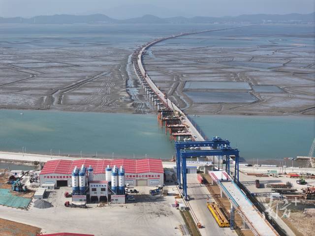 记者从中国铁路南昌局集团有限公司获悉,11月26日,在漳汕高铁福建段东山跨海特大桥施工现场,随着一榀重达数百吨的箱梁精准安放在桥墩上,漳汕高铁全线进入跨海大桥架梁施工阶段。