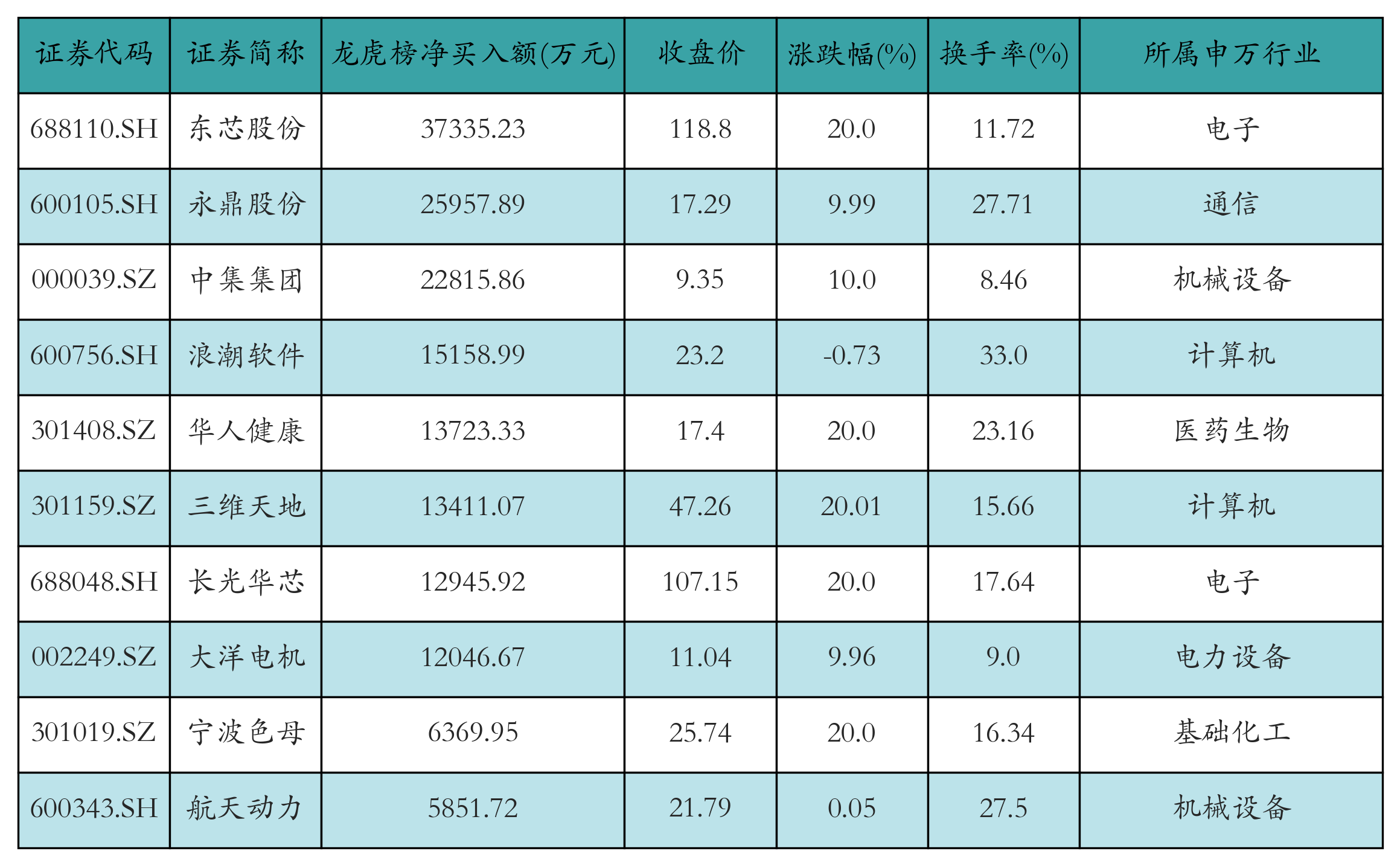 昨日龙虎榜营业部净买入额前10详情见下表: