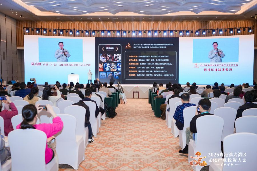 11月27日,2025粤港澳大湾区文化产业投资大会(广东·广州)的影视科技路演专场上,山桃(广东)文化科技有限责任公司总经理陈嘉胜以《短剧出海东南亚,解锁7亿人口市场的大机遇》为题进行项目路演。