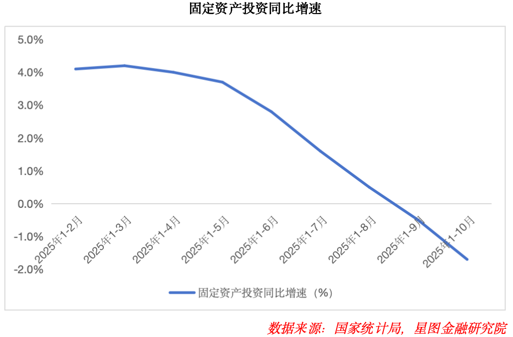 从国内环境看,10月宏观经济数据呈现阶段性走弱特征。社零总额同比增长2.9%,较前期增速有所放缓;前10个月全国固定资产投资累计同比下降1.7%,降幅较此前进一步扩大,引发部分资金对经济基本面担忧情绪。