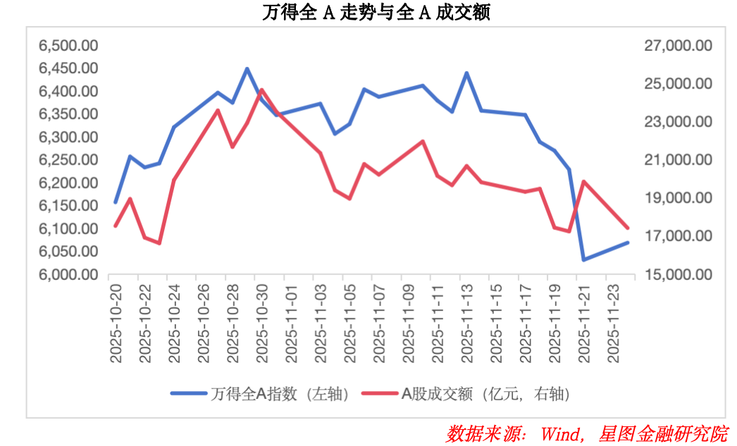 自11月中旬以来,受海外美联储降息预期边际回落、AI相关泡沫化讨论持续扩散,以及国内宏观经济数据阶段性承压等多重因素综合影响,A股市场出现较为明显的阶段性回调走势。